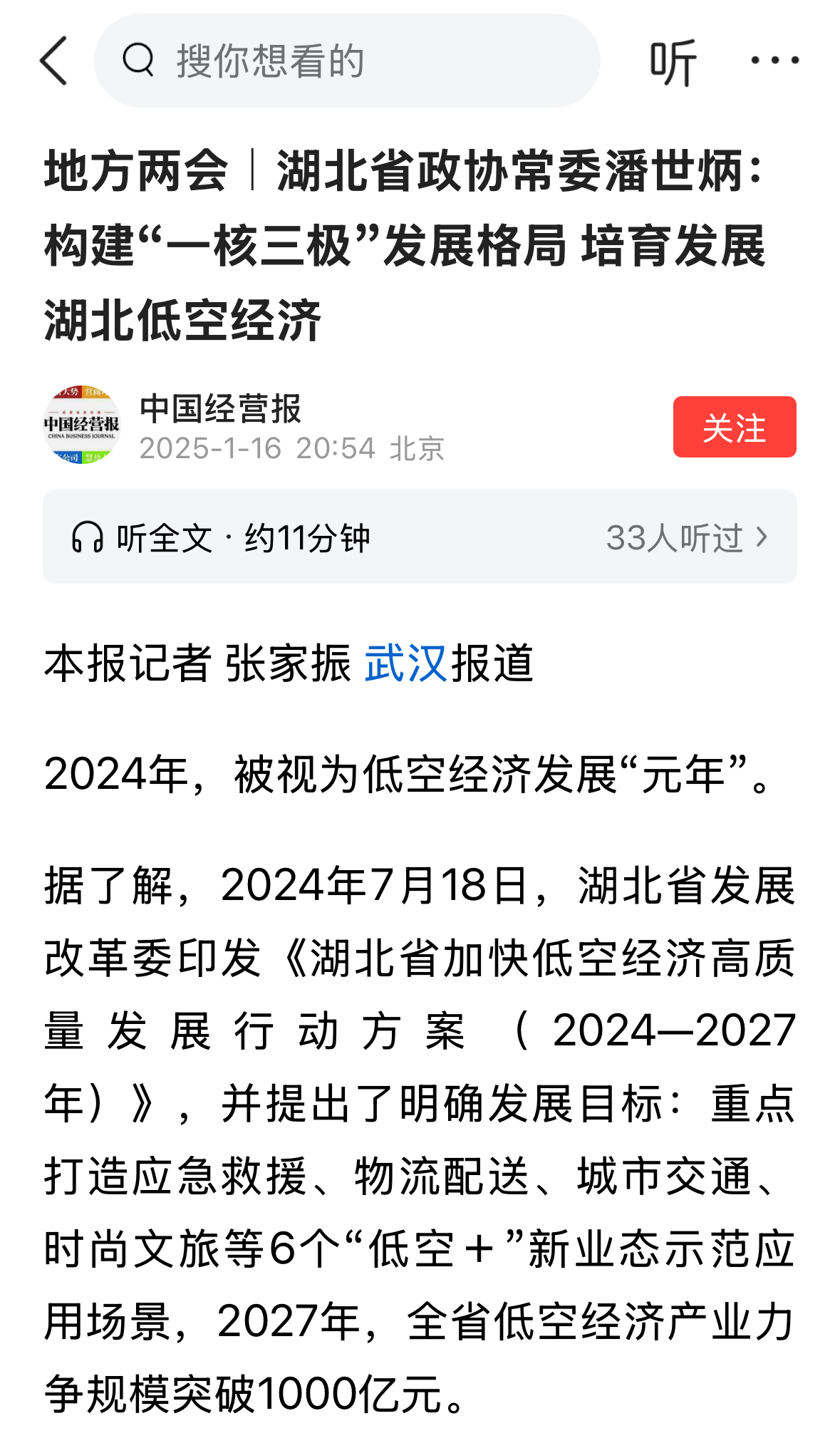 会议期间,潘世炳针对《关于着力培育湖北低空经济的几点建议》接受《中国经营报》、湖北画报记者采访,就低空经济产业面临的诸多发展难题进行深入解析,并结合困扰行业发展的空域“多头管理”与“管理空白”现象提出了建立完善低空经济法规政策及标准体系、构建低空经济规划和协作管理机制、提高低空经济项目谋划推进质量、加强低空经济财税和金融支持、引导发展“低空+”新模式新业态、低空智联和数字风控建设等针对性建议。